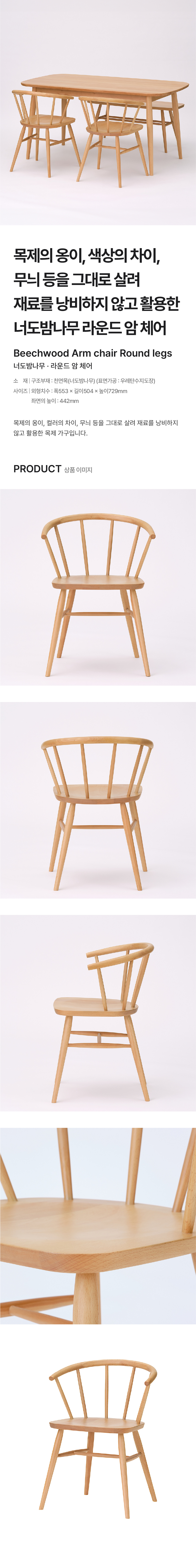 너도밤나무 라운드 암 체어/4550583987473