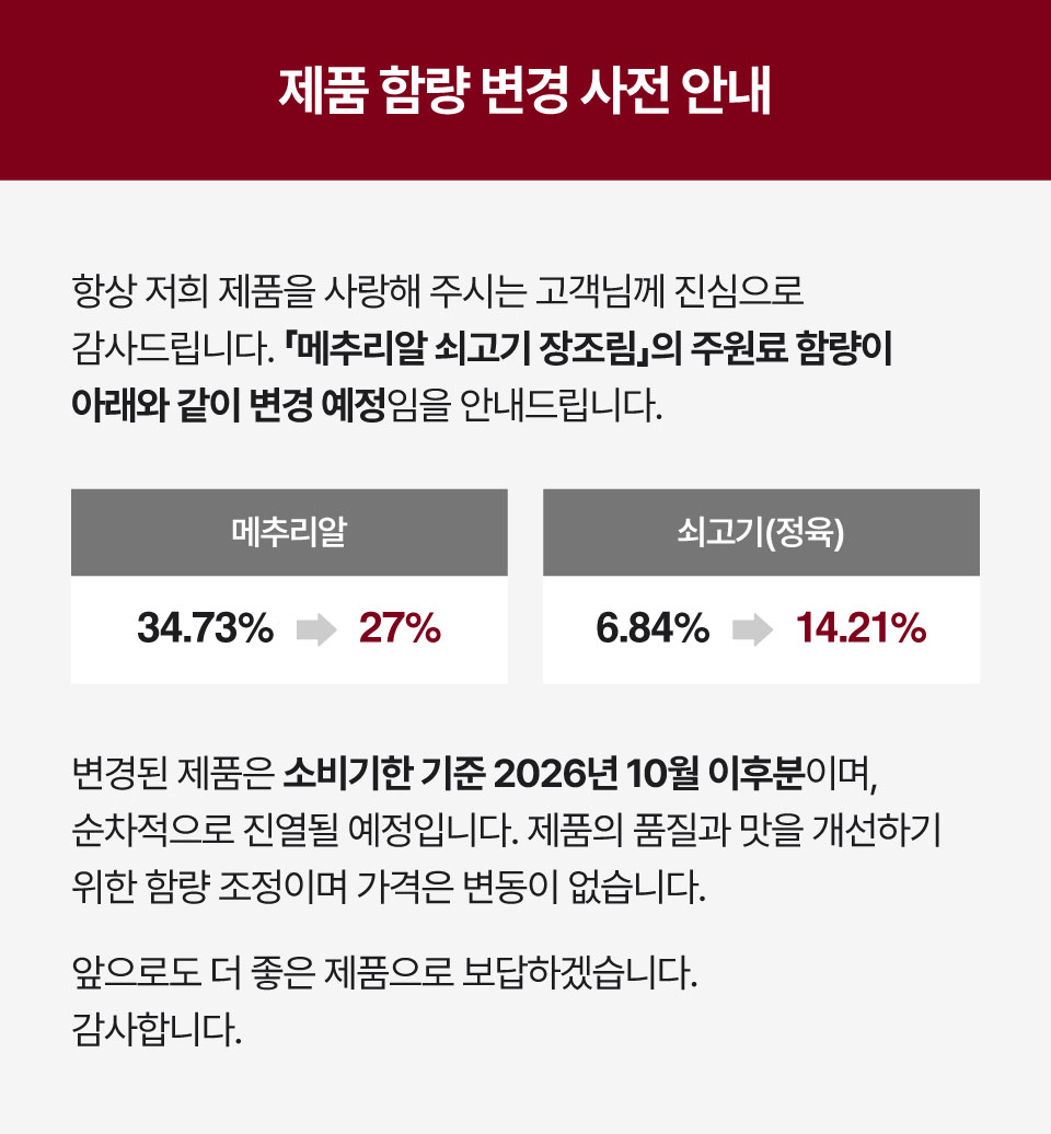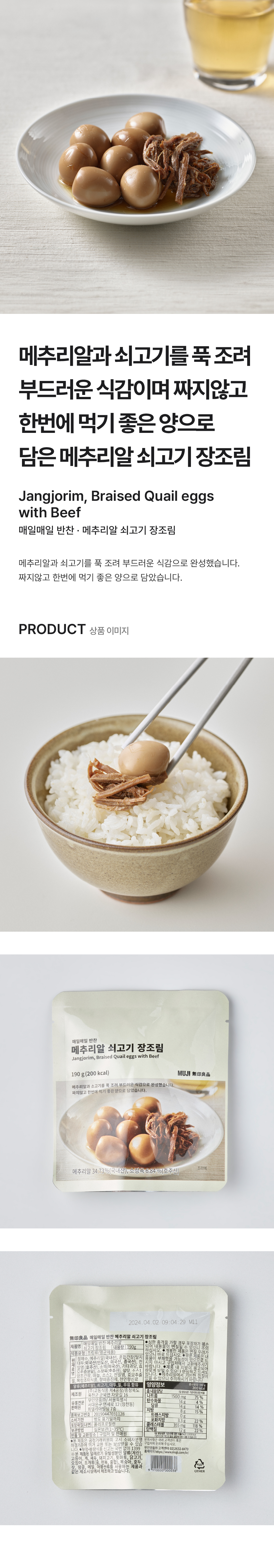 매일매일 반찬 메추리알 쇠고기 장조림/9110000000038