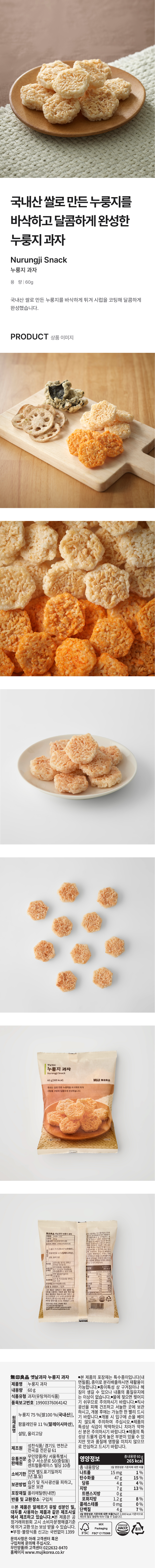 누룽지 75%[쌀 100%(국내산)], 팜올레인유 11%(말레이시아산), 설탕, 올리고당