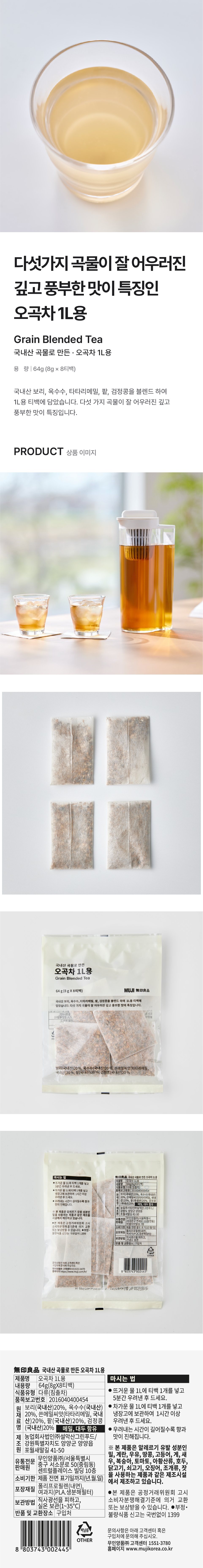 국내산 곡물로 만든 오곡차 1L용/8803743002445
