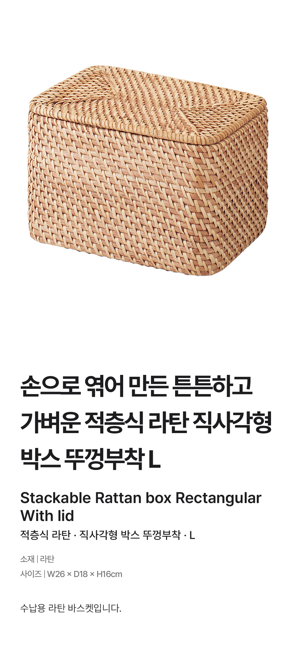 적층식 라탄 직사각형 박스 뚜껑부착ㆍL/4945247381337