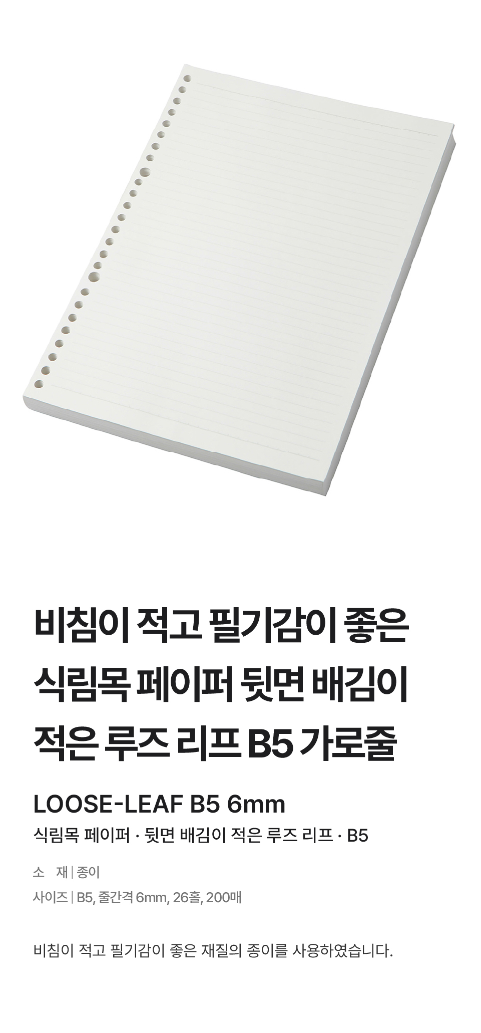 B5ㆍ6mm가로줄ㆍ26홀ㆍ200매