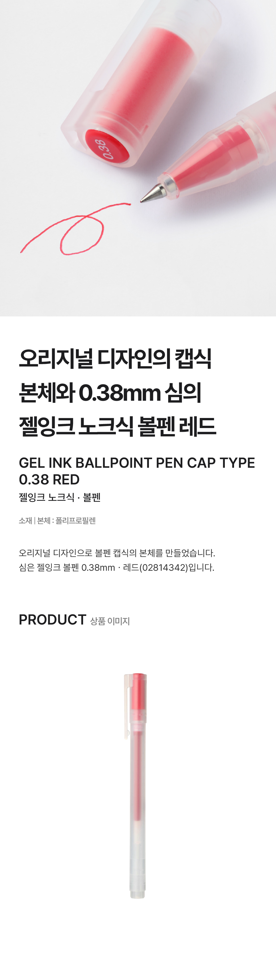 젤 잉크 캡식 볼펜 레드 0.38mm/4550002794255