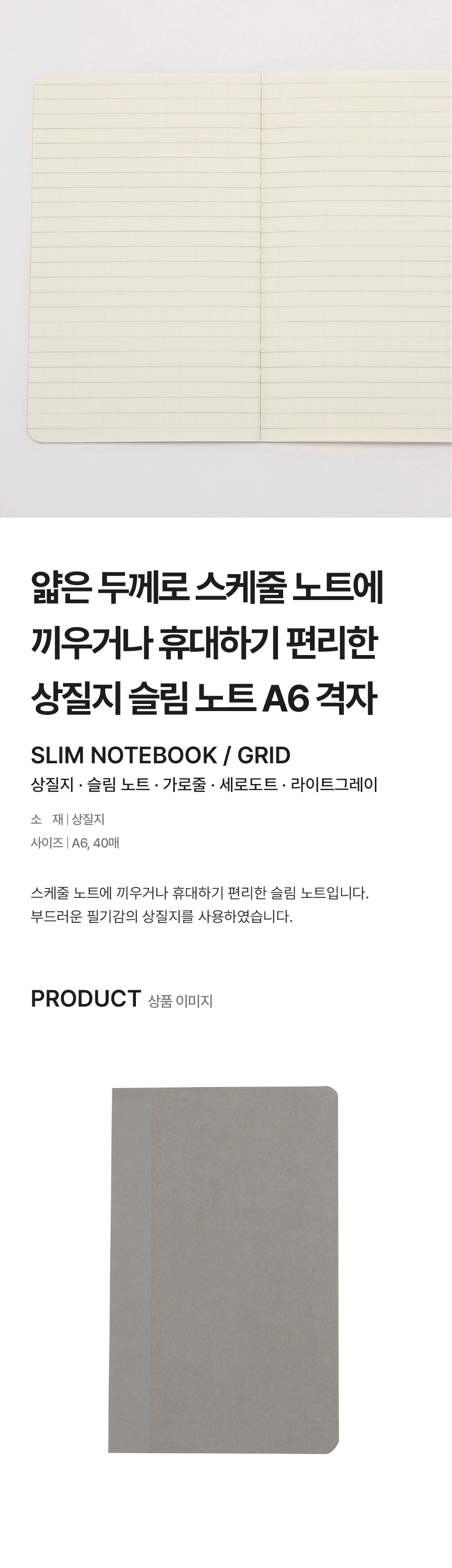 상질지 슬림 노트・가로줄・세로 도트 라이트그레이 A6슬림ㆍ40매/4550002185206