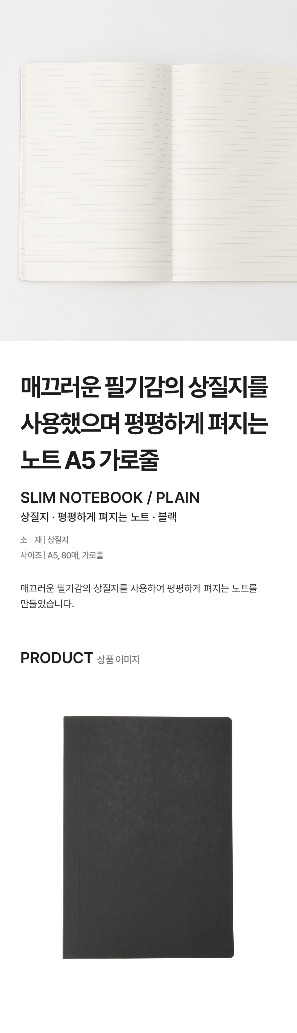 상질지 평평하게 펴지는 노트 블랙 A5ㆍ80매ㆍ가로줄/4550002185237