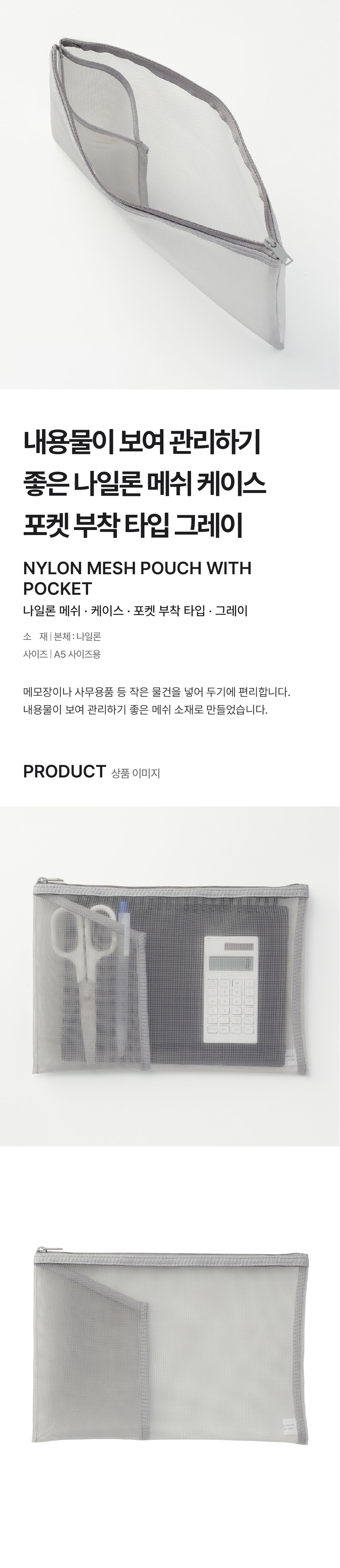 나일론 메쉬 케이스ㆍ포켓 부착 타입 그레이 A5사이즈용/4550182263671