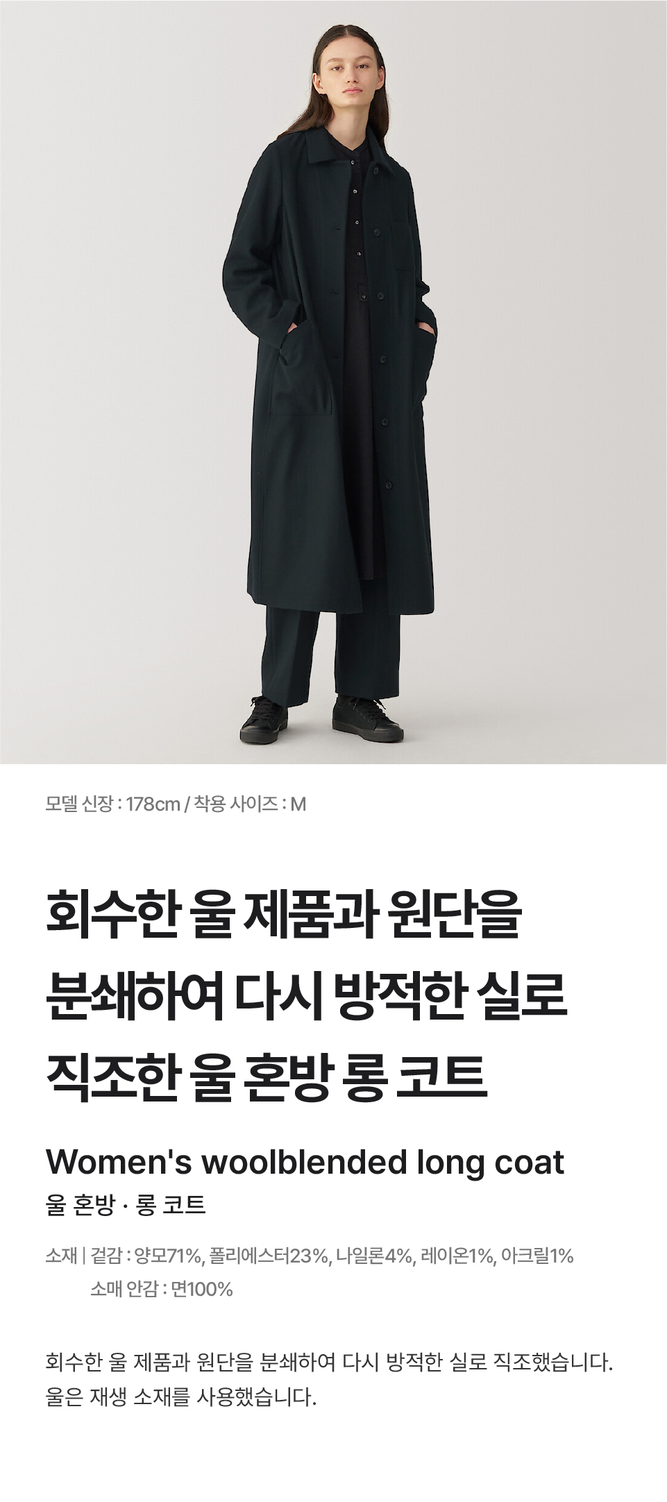 겉감:양모71%/폴리에스터23%/나일론4%/레이온1%/아크릴1%,소매 안감:면100%