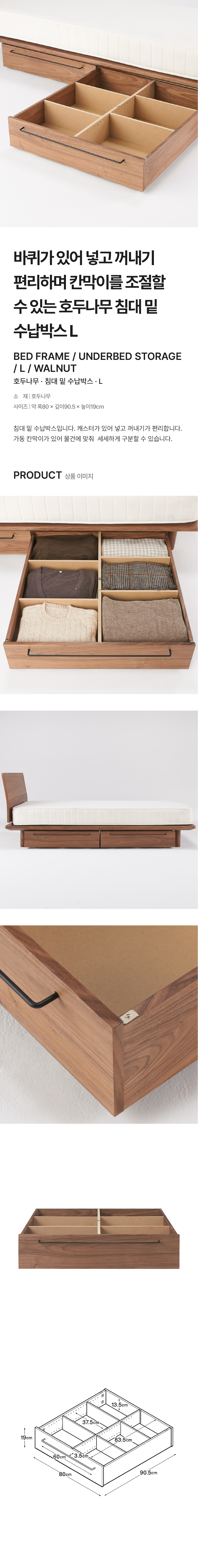 호두나무 침대 밑 수납박스ㆍL/4550002554026