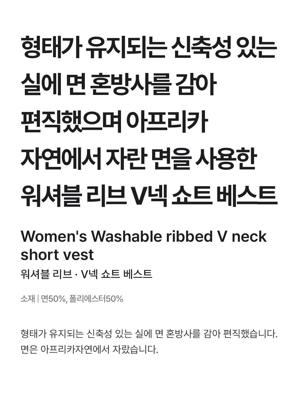 워셔블 리브 V넥 쇼트 베스트/BA1ONA4S