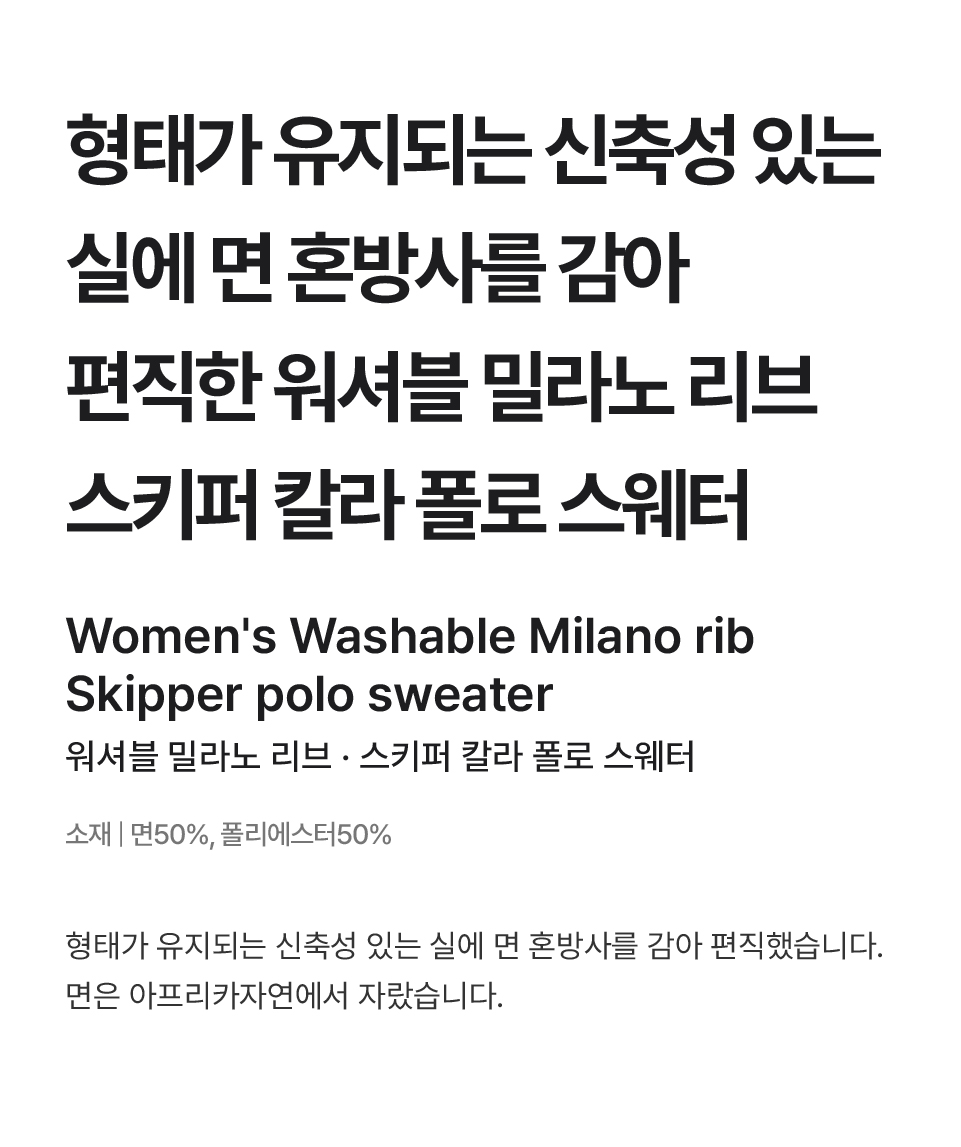 워셔블 밀라노 리브 스키퍼 칼라 폴로 스웨터/BA1OOA4S