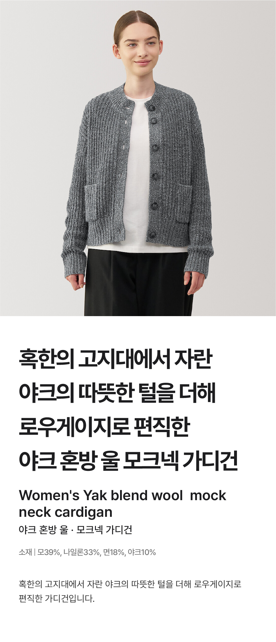 야크 혼방 울 모크넥 가디건/BA1PPA4A