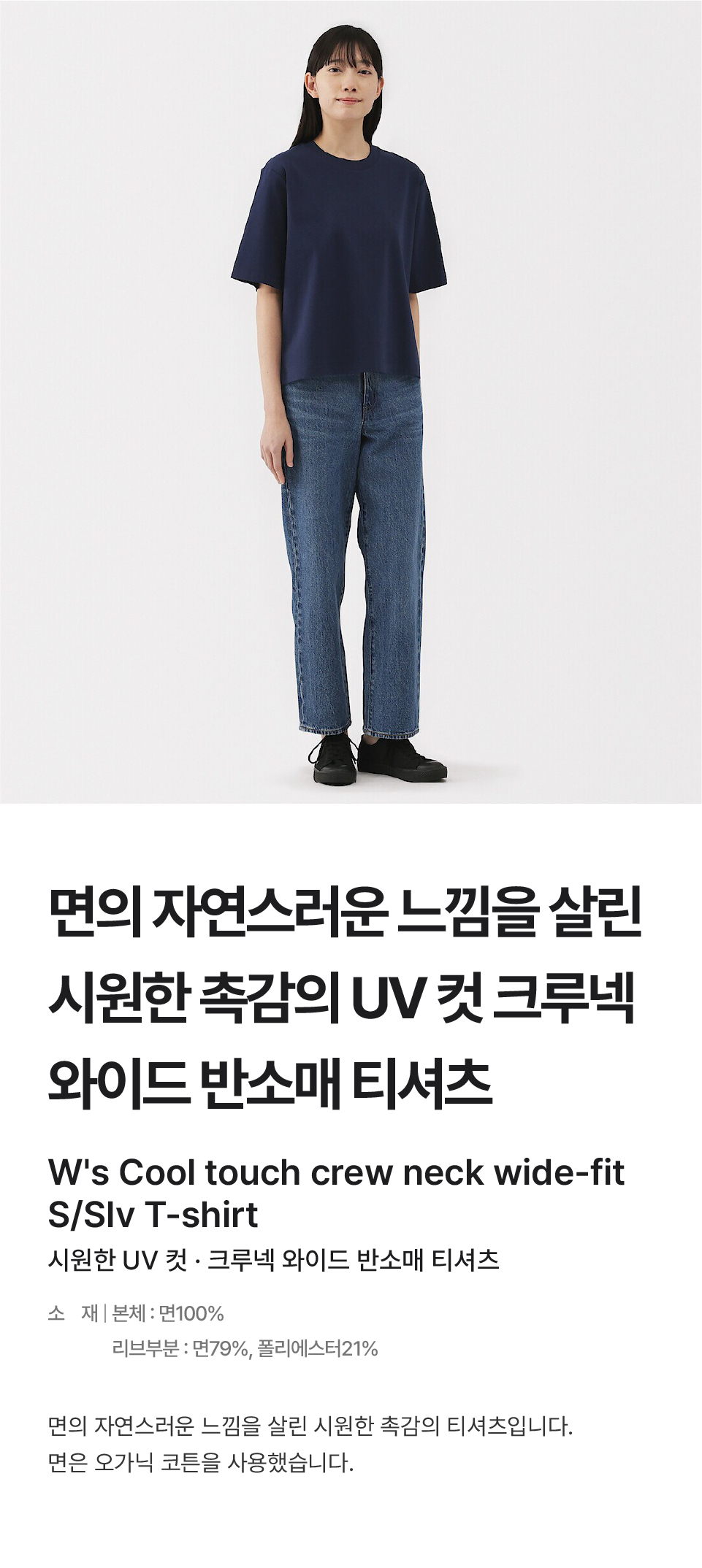 시원한 UV 컷 크루넥 와이드 반소매 티셔츠/BB2RGA5S