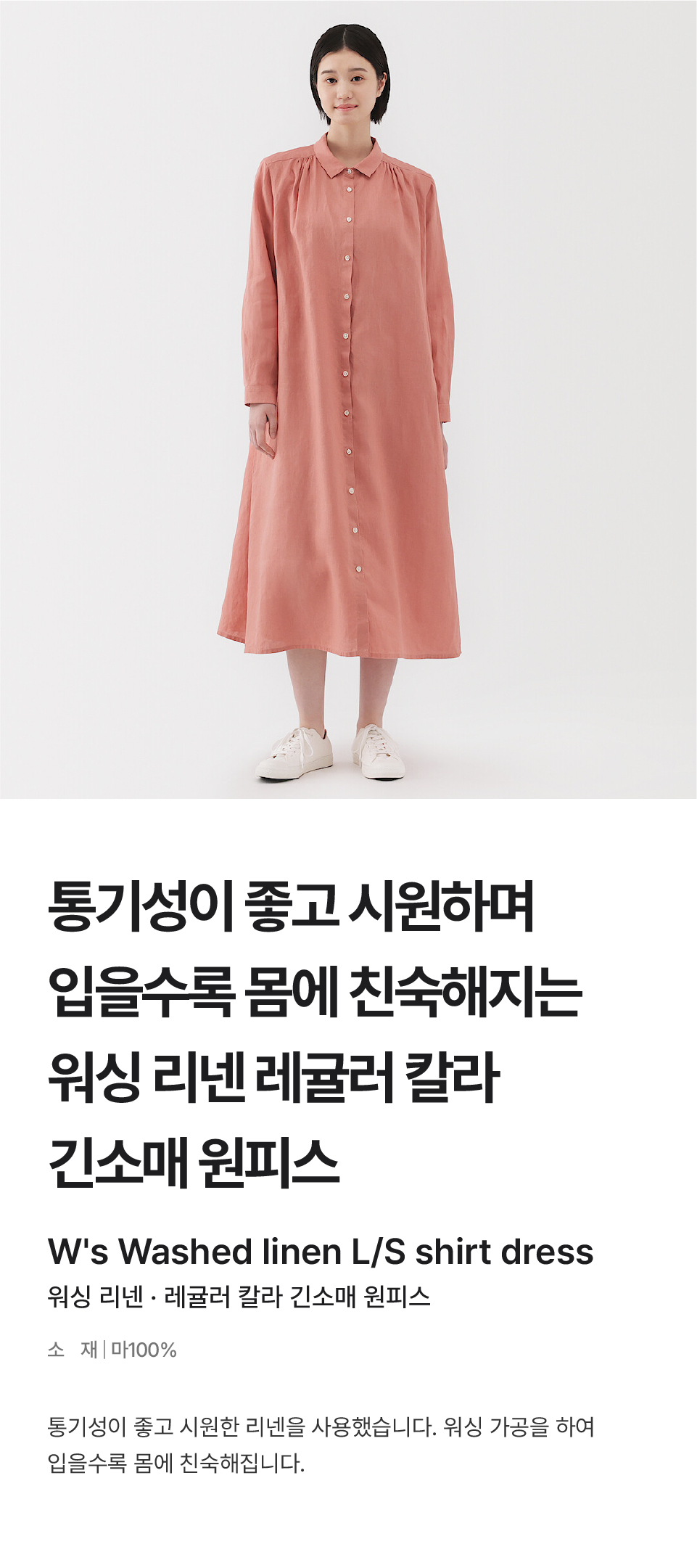 워싱 리넨 레귤러 칼라 긴소매 원피스/BC2LDA5S
