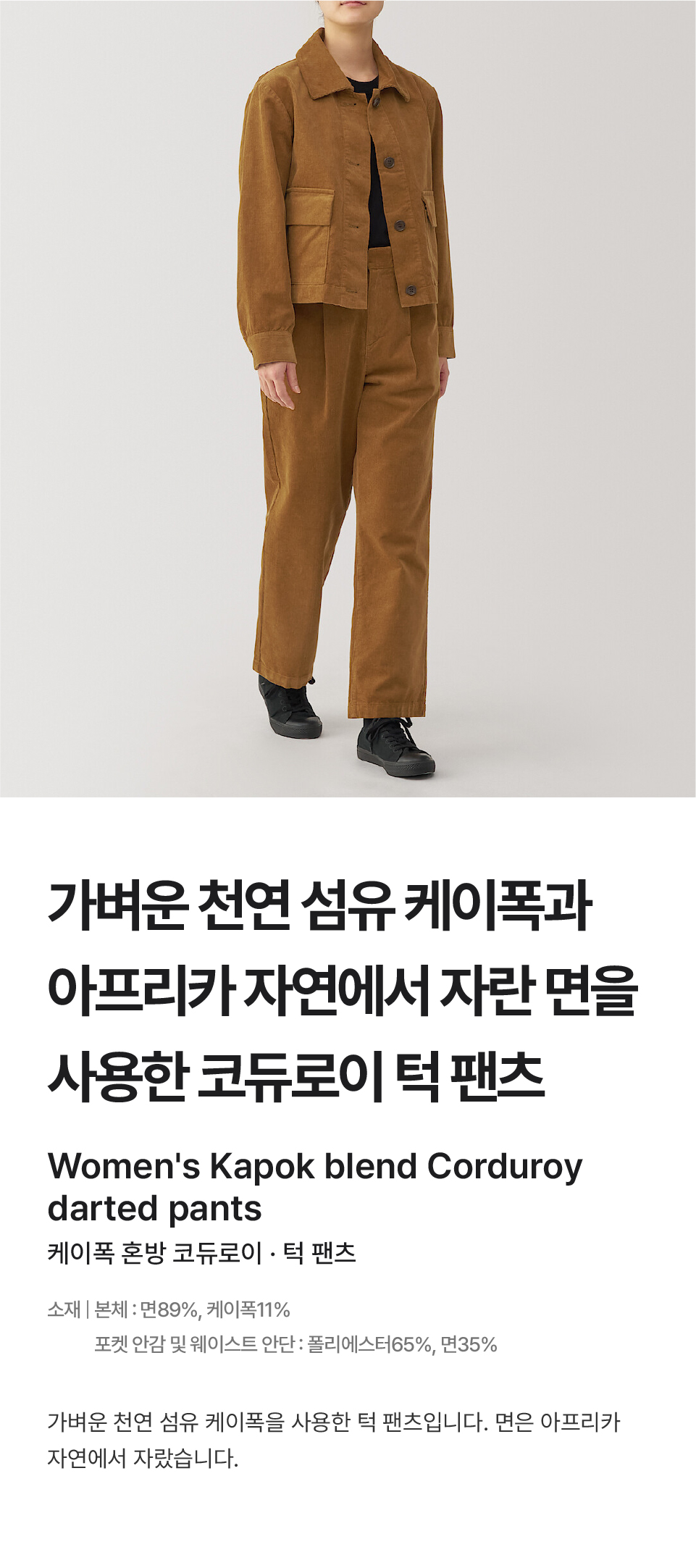 본체:면89%케이폭(지정외섬유)11%포켓 안감 웨이스트 안단:폴리에스터65%면35%