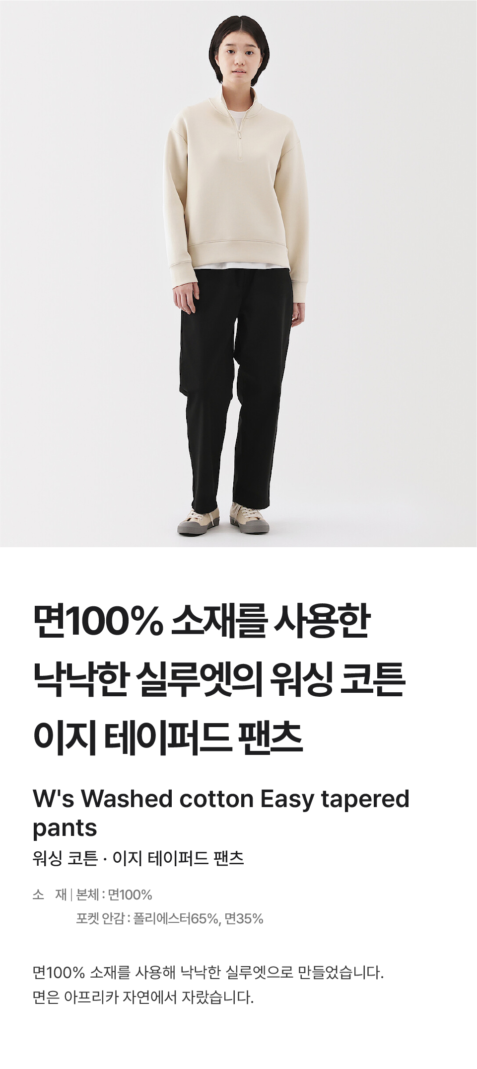 워싱 코튼 이지 테이퍼드 팬츠