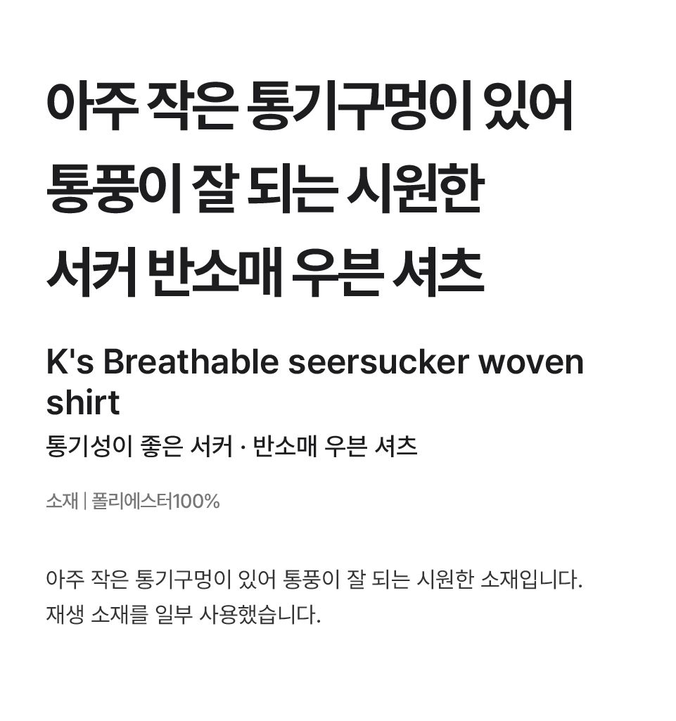 키즈 통기성이 좋은 서커 반소매 우븐 셔츠/CB1JAA4S