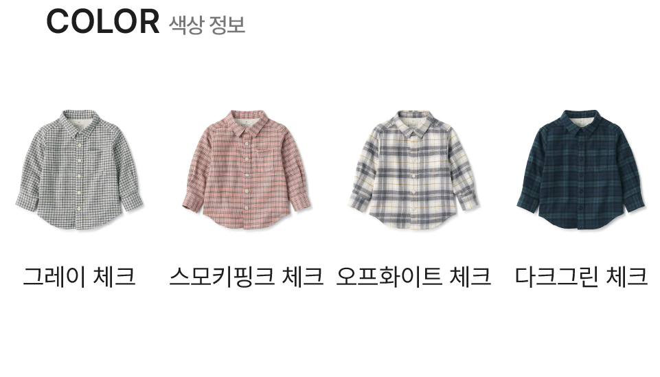 오프화이트 체크,그레이 체크,스모키핑크 체크,다크그린 체크