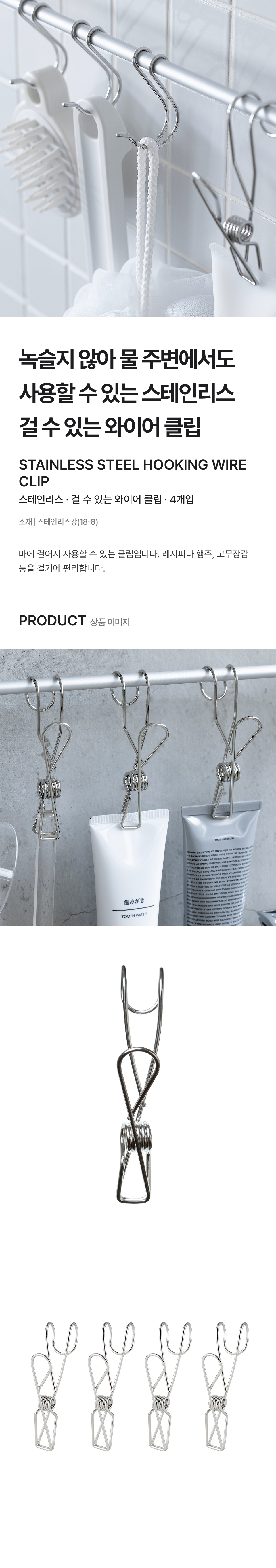 걸 수 있는 와이어 클립 · 4개입ㆍ스테인리스/4549738755586