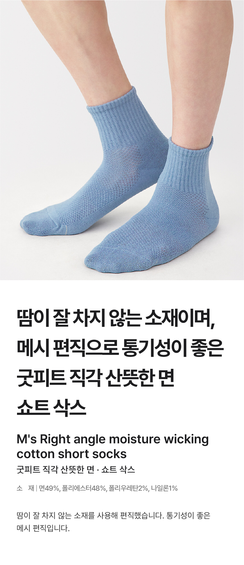 굿피트 직각 산뜻한 면 쇼트 삭스 25-27cm/DAD34A5S