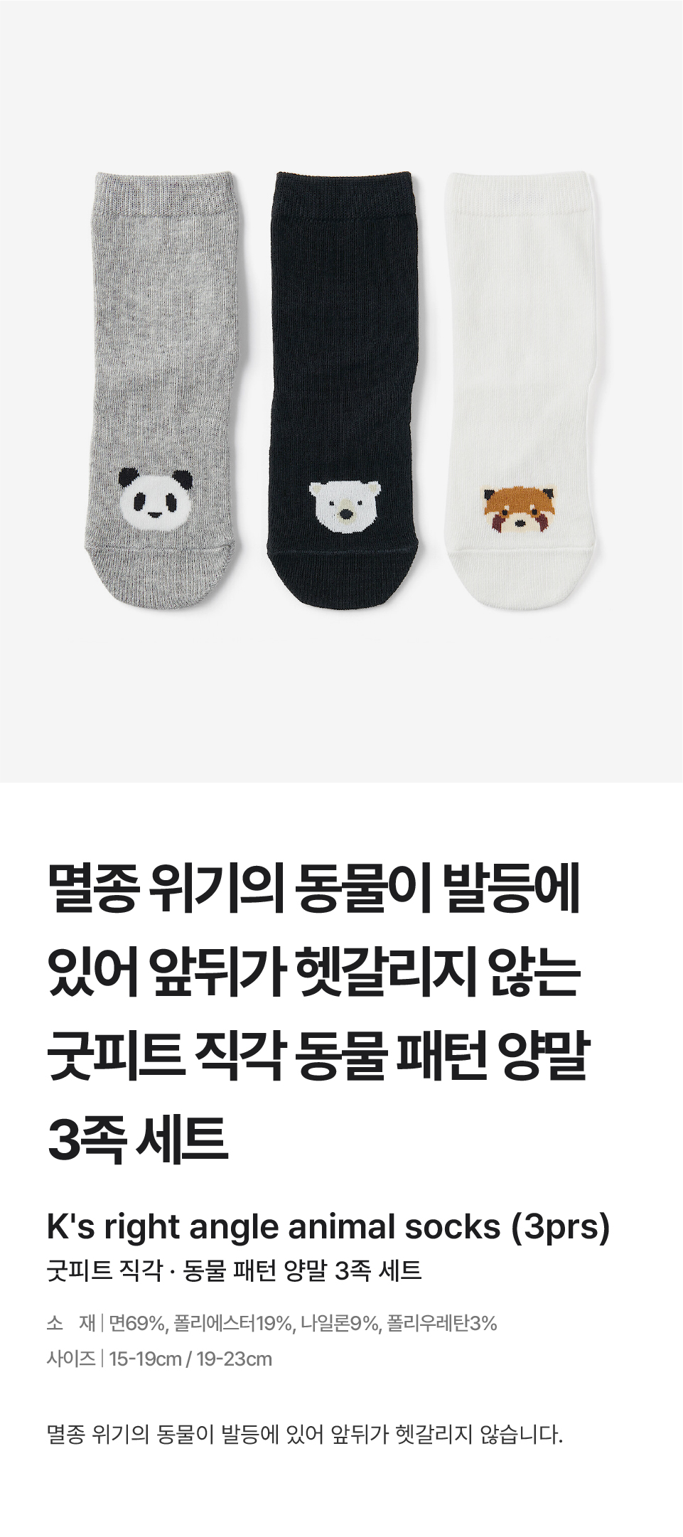 키즈 굿피트 직각 동물 패턴 양말 3족 세트/DAM49A5S