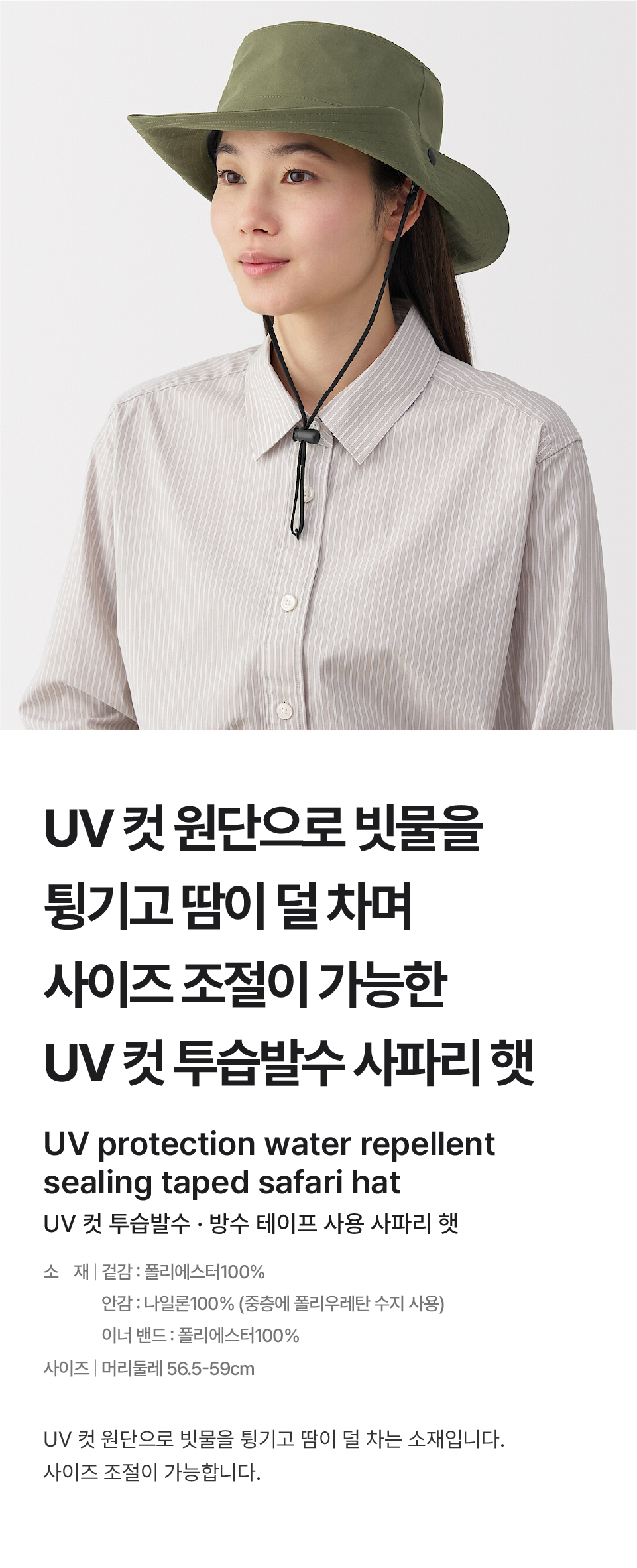 UV 컷 투습발수 방수 테이프 사용 사파리 햇/DBA32A5S