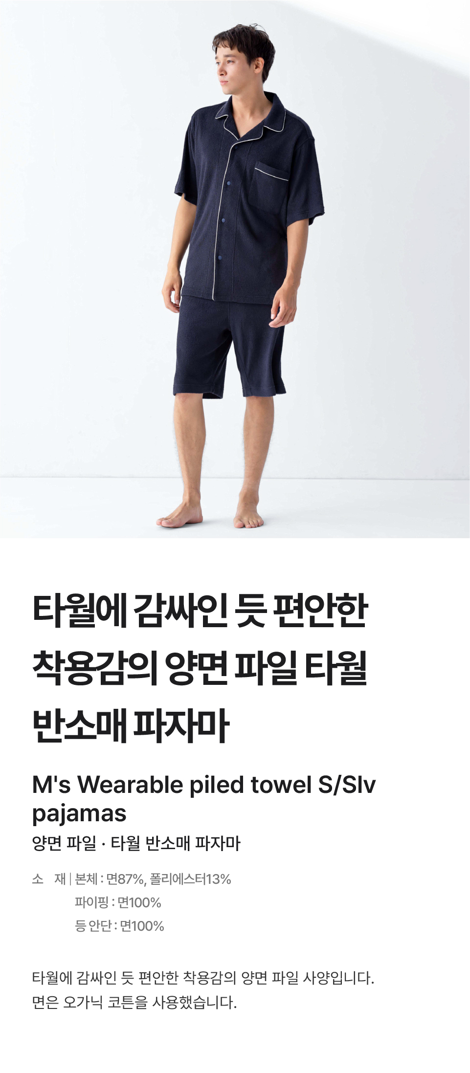 남성 양면 파일 타월 반소매 파자마/FB0Y9A5S