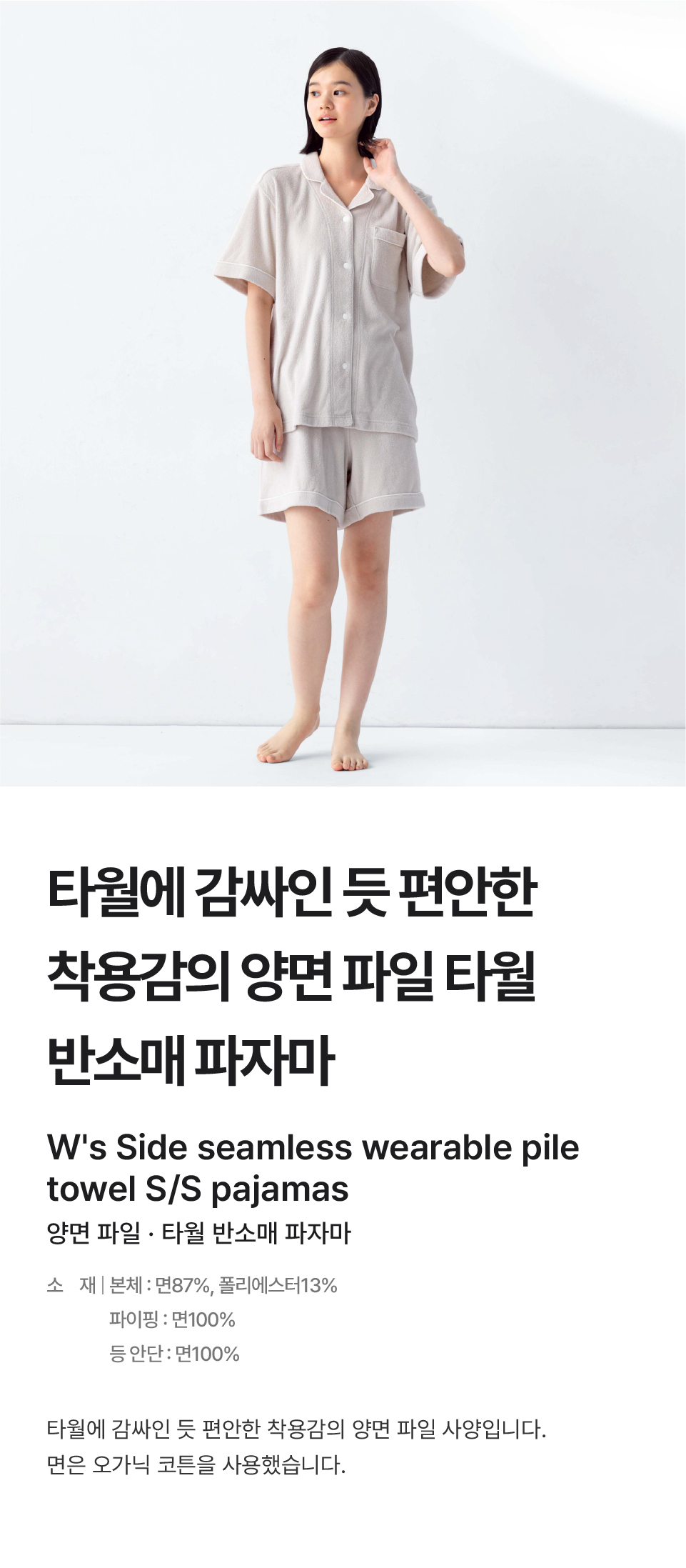 본체:면87%/폴리에스터13%, 파이핑:면100%, 등 안단:면100%