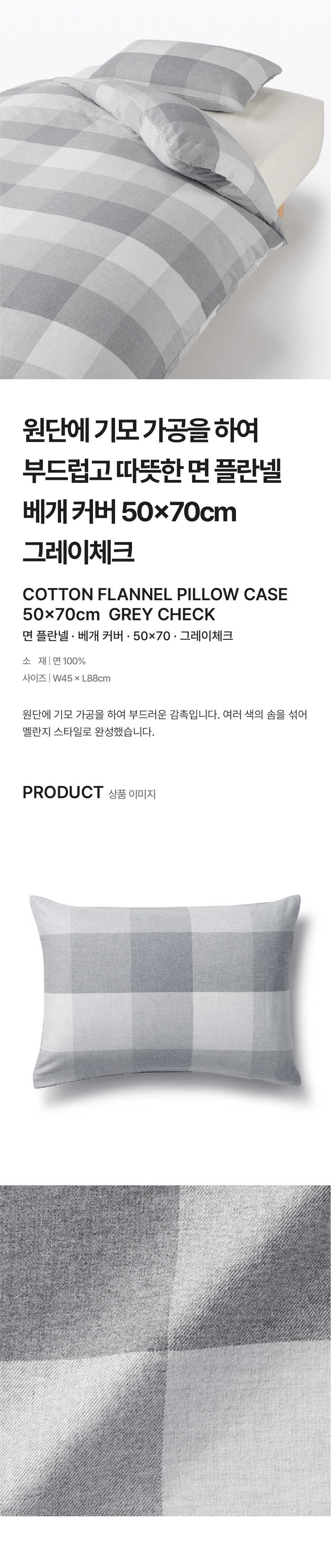 면 플란넬 베개 커버 그레이체크 50x70cm용/4550584274084