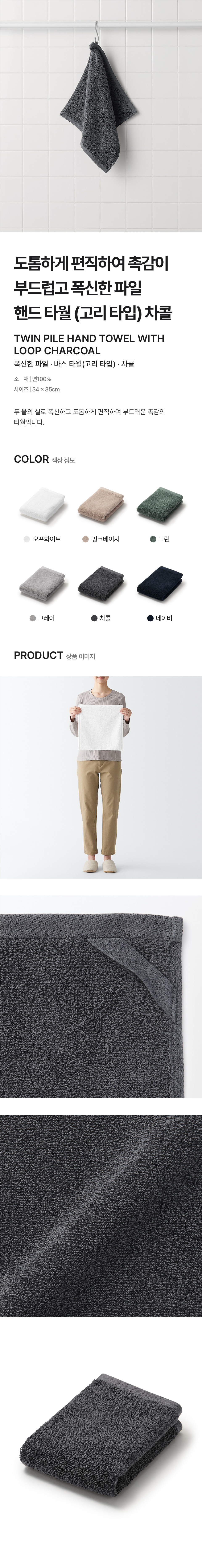 폭신한 파일 핸드 타월(고리 타입) 차콜 34x35cm/4550584705380