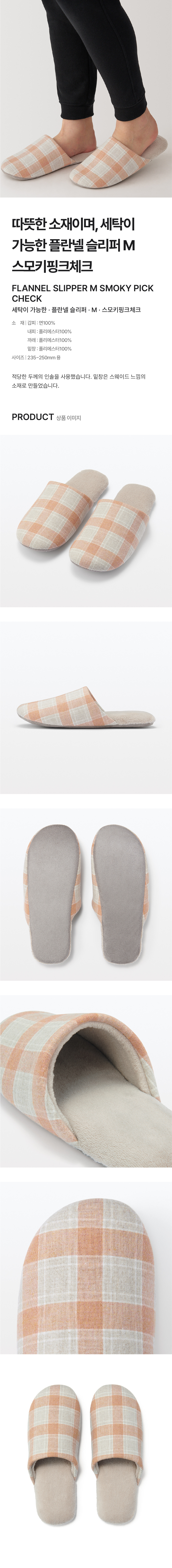 세탁이 가능한 플란넬 슬리퍼 스모키핑크체크 M 23.5~25cm/4550584271274