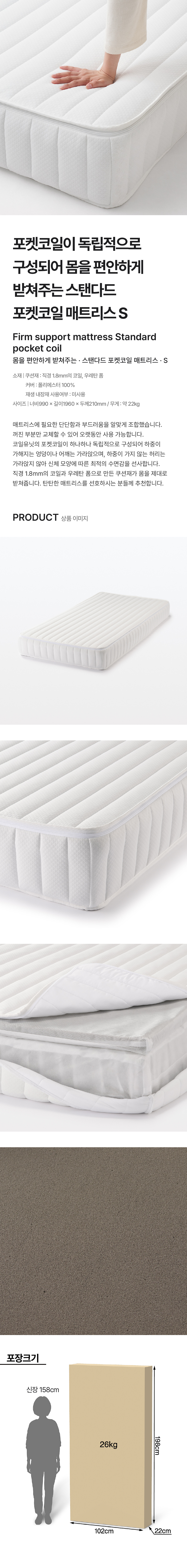몸을 편안하게 받쳐주는 스탠다드 포켓코일 매트리스ㆍS/4550583435455