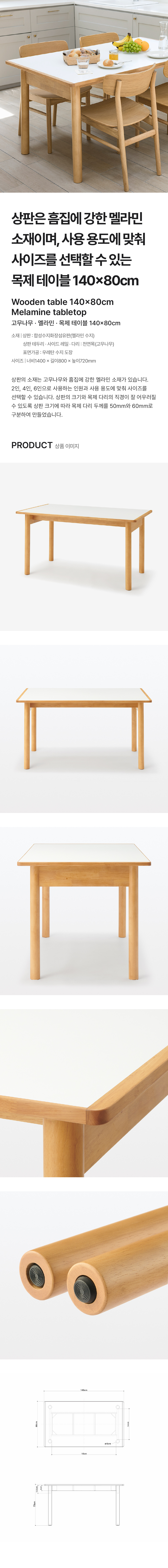 고무나무 · 멜라민 목제 테이블 140*80 cm(멜라민 상판)/4550583394677