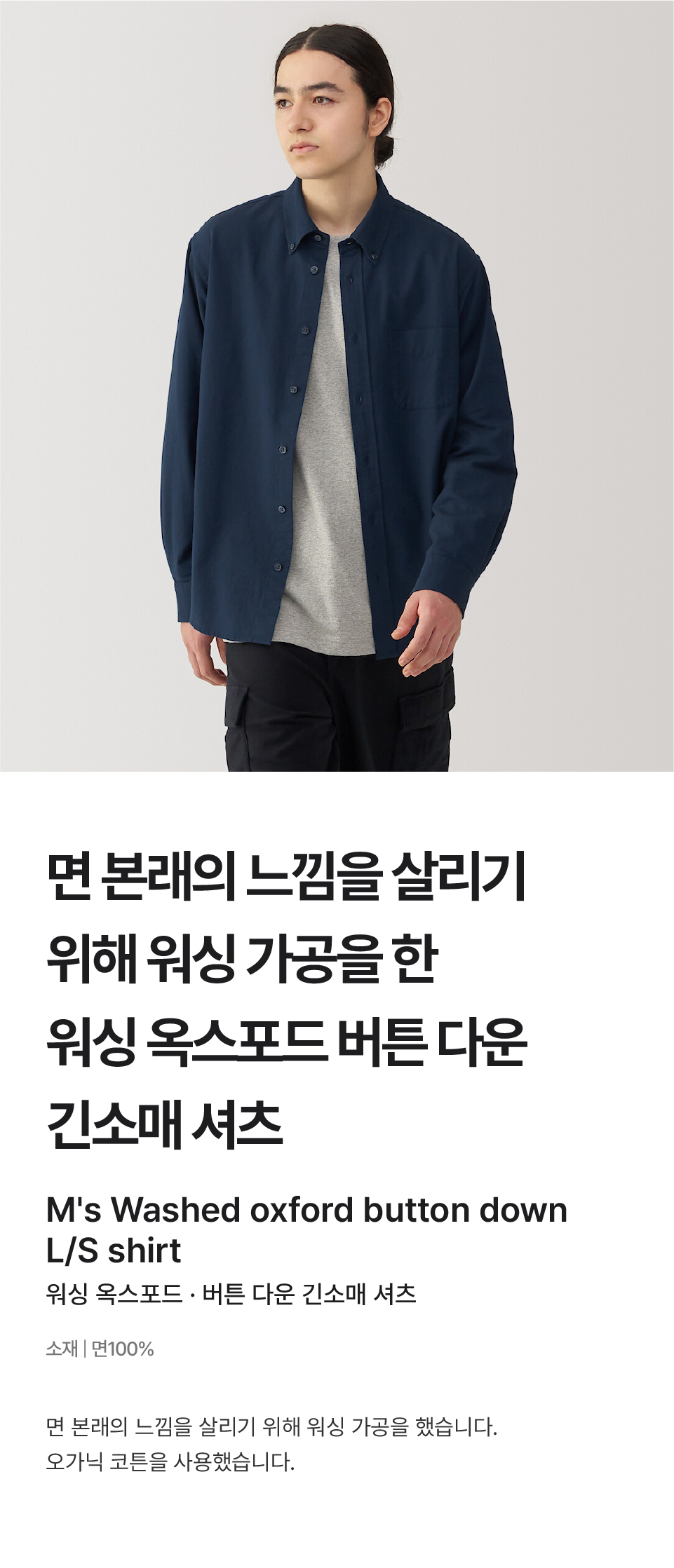 워싱 옥스포드 버튼 다운 긴소매 셔츠/AC4AAA4A