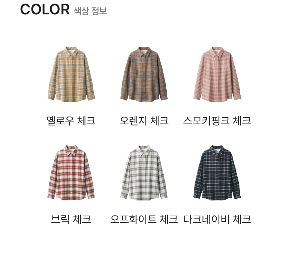 오프화이트 체크,스모키핑크 체크,브릭 체크,옐로우 체크,다크네이비 체크,오렌지 체크