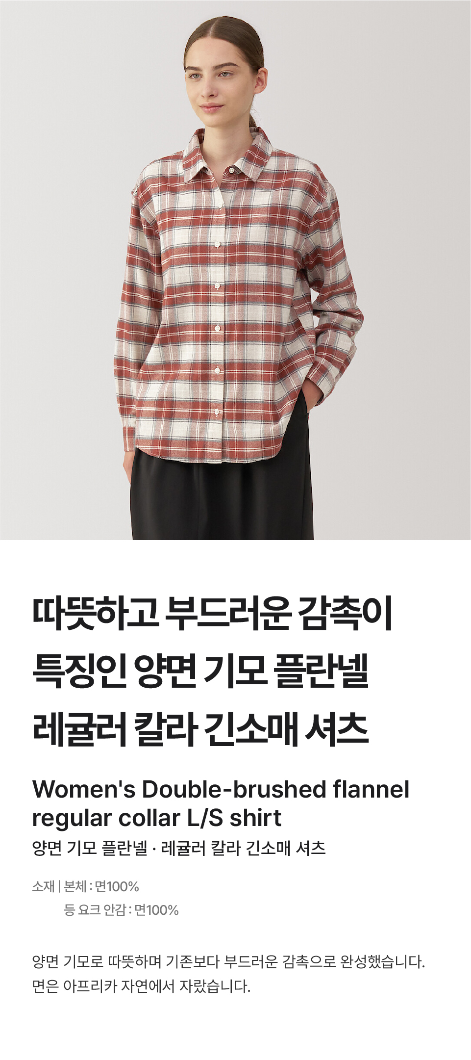 양면 기모 플란넬 레귤러 칼라 긴소매 셔츠/BC2JWA4A